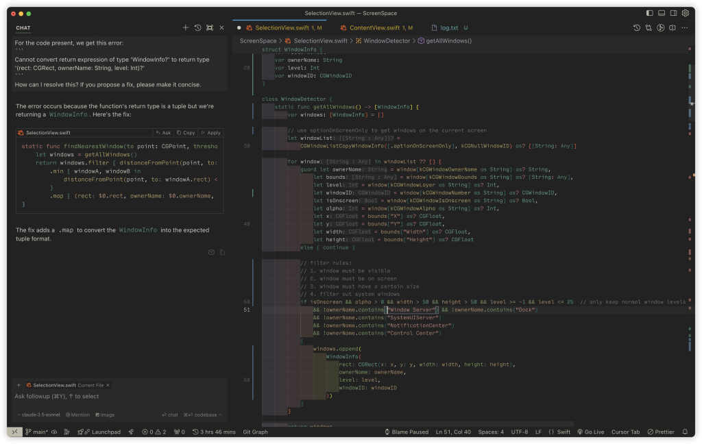 Swift 看起来和 Flutter 还是有些区别,在写法上,不过要学的还有很多,但是还好有 Cursor,回头公众号写一篇文章来说说 Coding & learning with Cursor 🤔