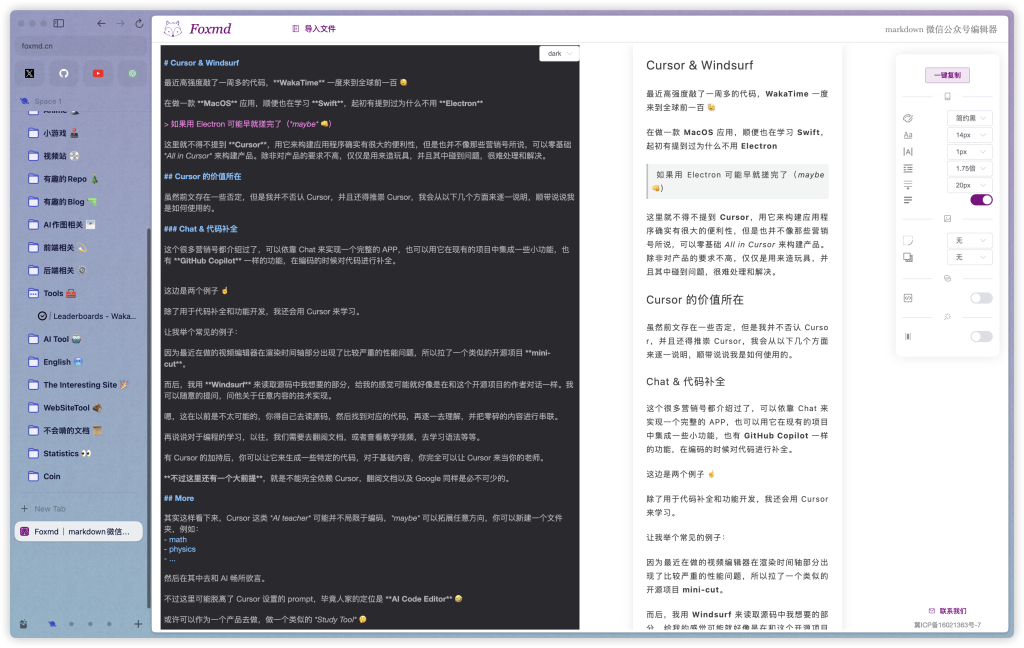 逆天微信,需要用第三方工具来支持 Markdown 😅
