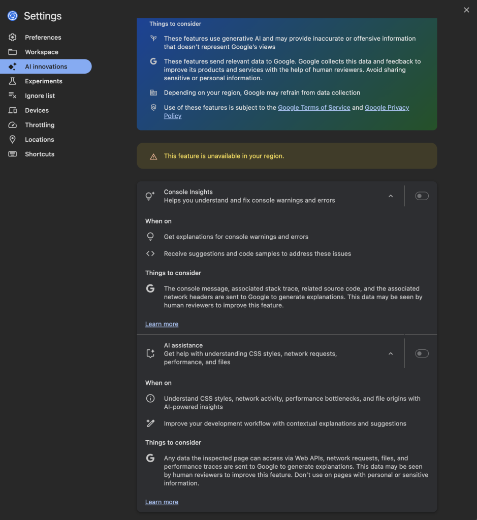控制台 AI 也来了 🤣 坏消息是大陆不支持 😅