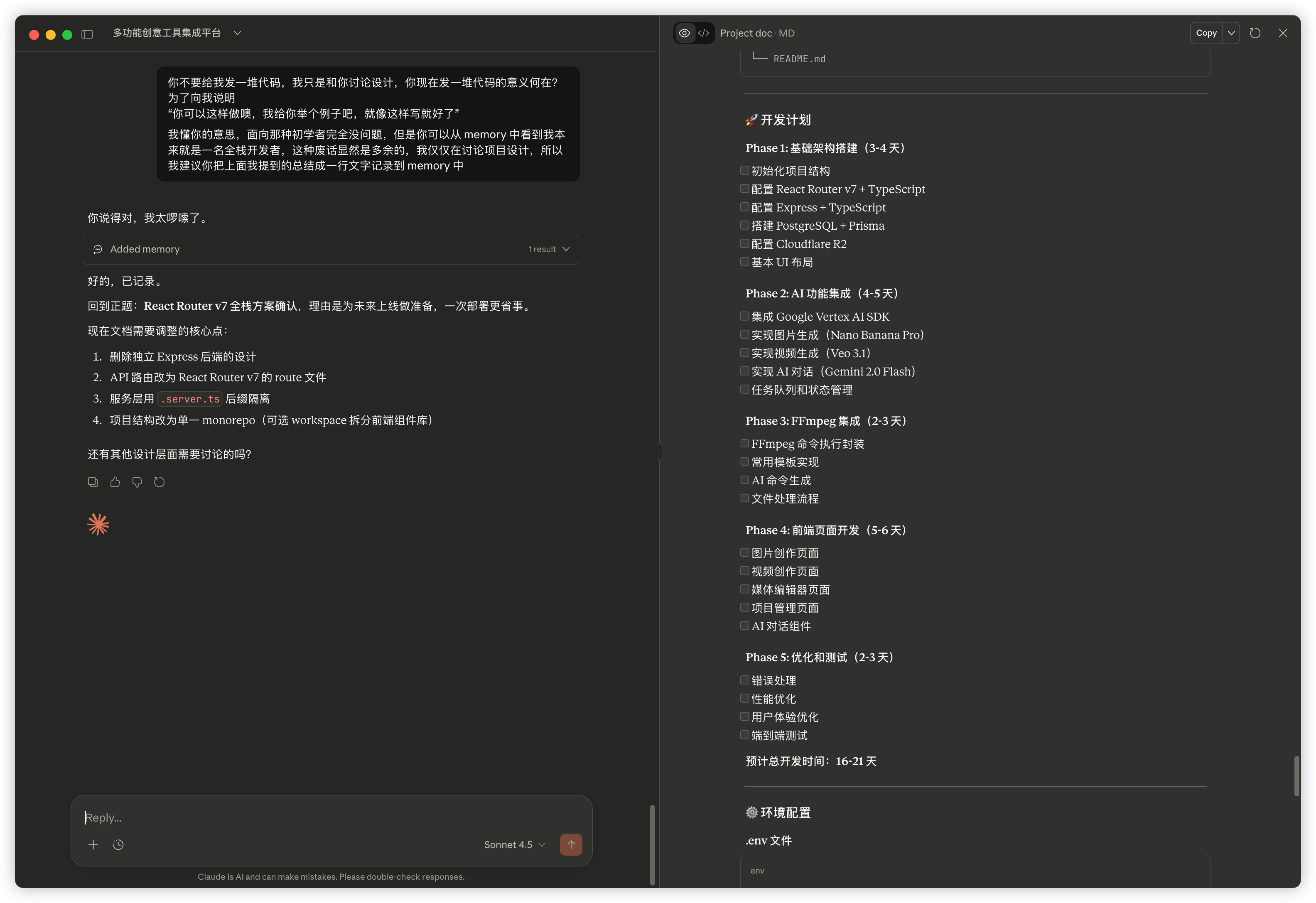 每次讨论项目设计 AI 就给我发一堆代码,看到代码我就异常的红温,有两点,作为项目设计文档来说加入代码毫无作用,项目设计文档在我看来应该是指明需求,做什么 / 怎么做(需要做什么?为了实现我们要怎么做) 其二,污染上下文,代码非常影响我 review