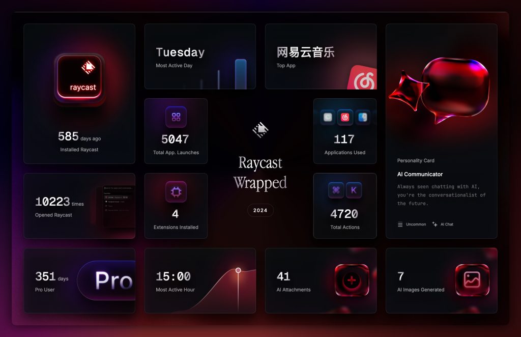 不过话说回来,前段时间看 raycast 发推提到 12.16,评论区都说是 in windows,我也这样觉得,结果是年度总结 🤣